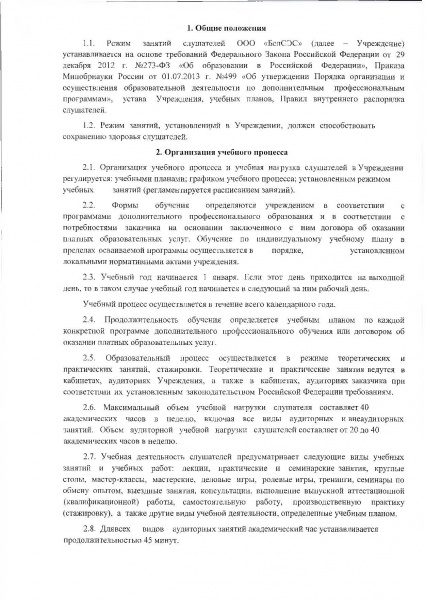 Положение о режиме занятий слушателей в ООО БелСЭС
