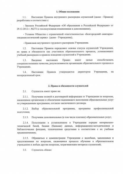 Правила внутреннего распорядка слушателей