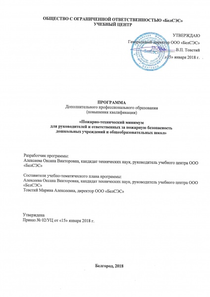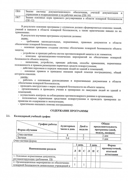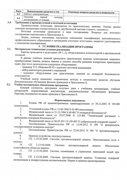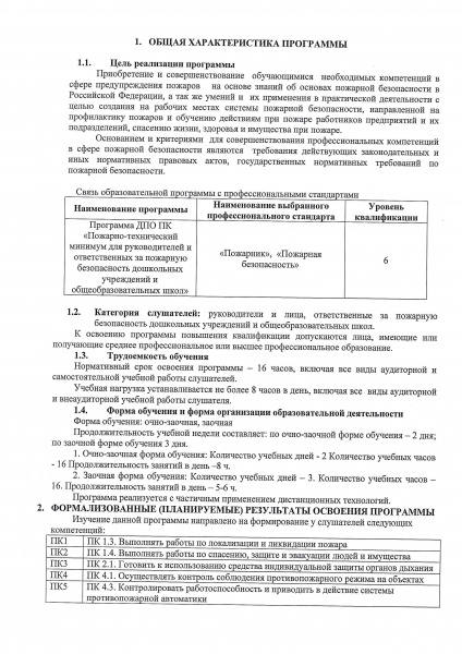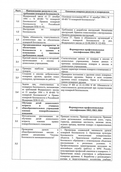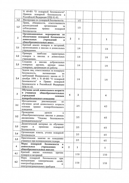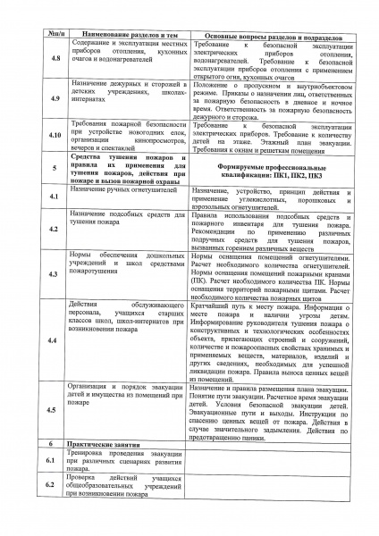 10. Программа дополнительного профессионального образования повышения квалификации «Пожарно-технический минимум для руководителей и ответственных за пожарную безопасность дошкольных учреждений и общеобразовательных школ»
