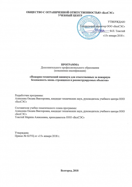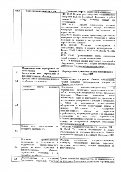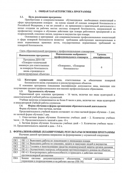 09. Программа дополнительного профессионального образования повышения квалификации «Пожарно-технический минимум для ответственных за пожарную безопасность вновь строящихся и реконструируемых объектов»
