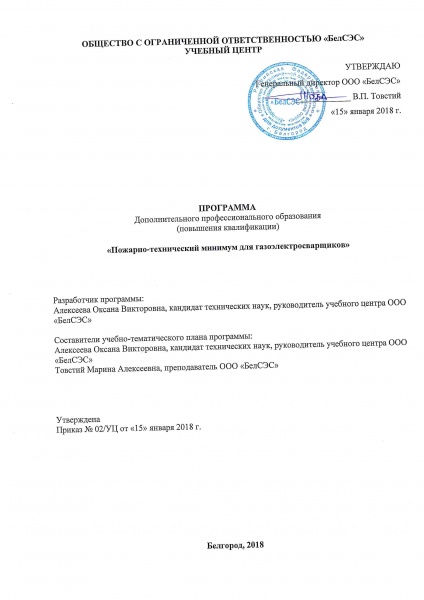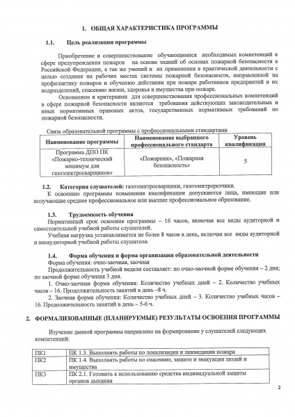 02. Программа дополнительного профессионального образования повышения квалификации «Пожарно-технический минимум для газоэлектросварщиков»