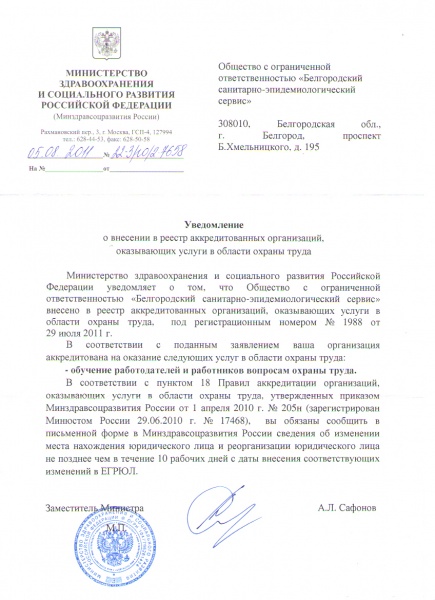 Уведомление об аккредитации